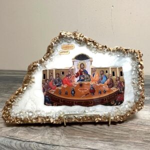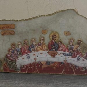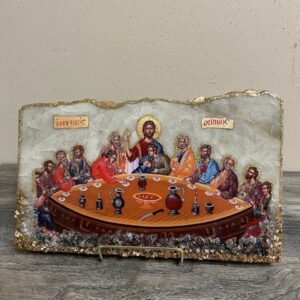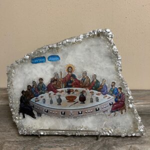 Handmade Icon – The Last Supper on White Granite with Crystals