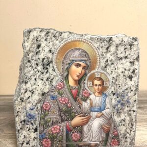 Handmade Icon of the Virgin Mary on Dark Granite