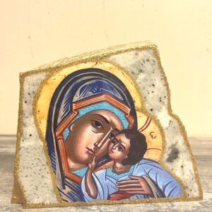 Handmade Icon of the Virgin Mary and Child – Grey Granite with Gold Details